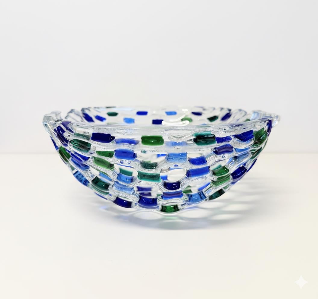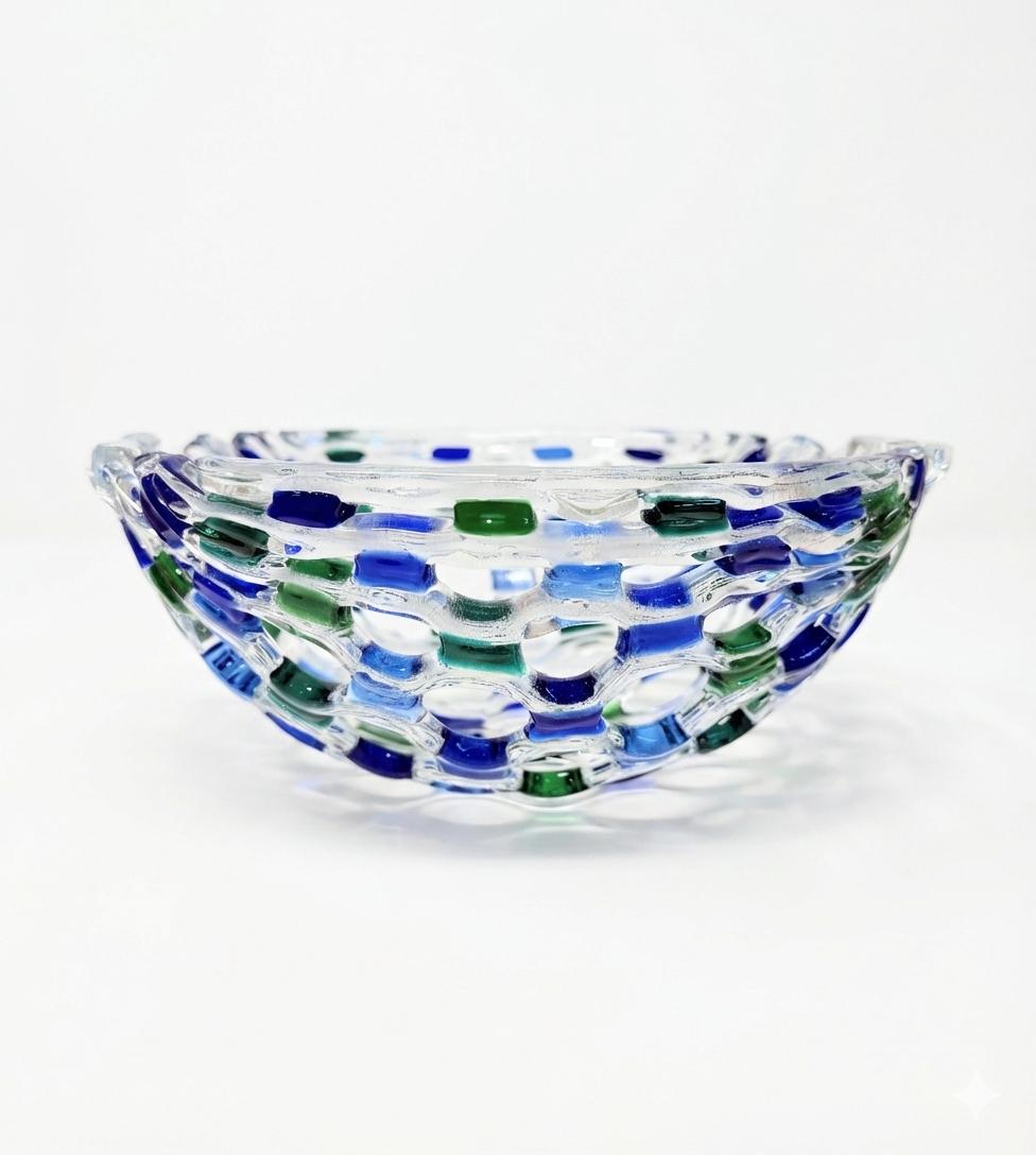 The elegant blue and green accents give this glass art bowl a refreshing, modern look that complements any home décor. Whether displayed as a centerpiece, used as a fruit bowl, or given as a unique handmade gift, it’s sure to draw attention and admiration.