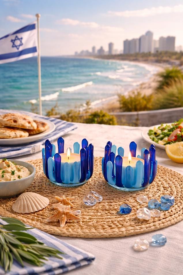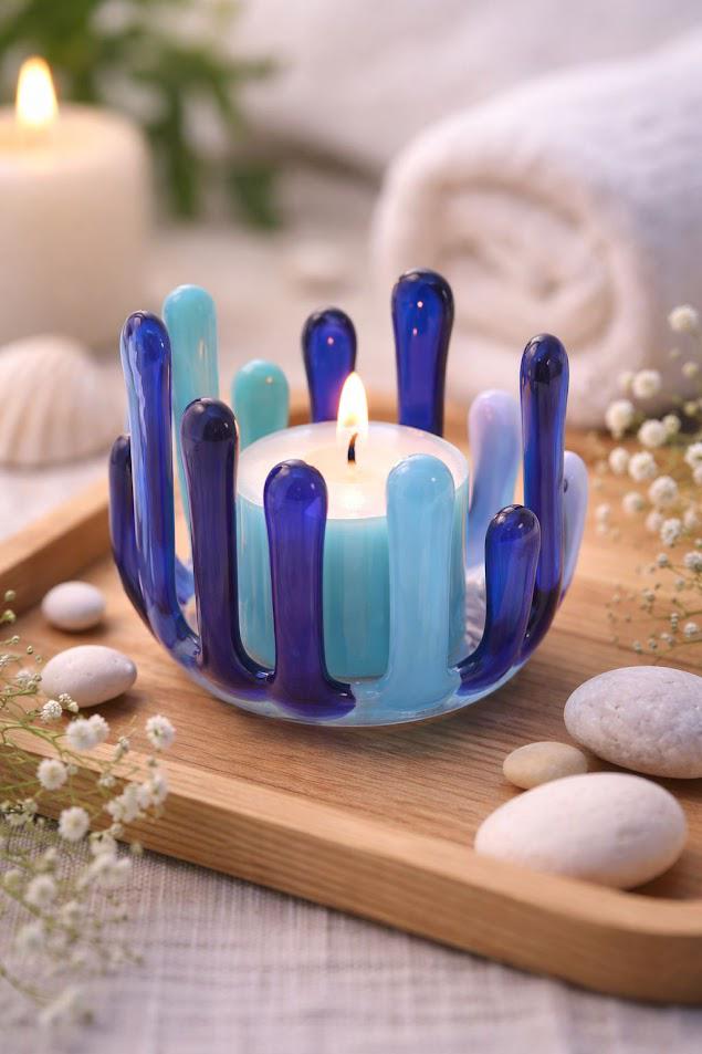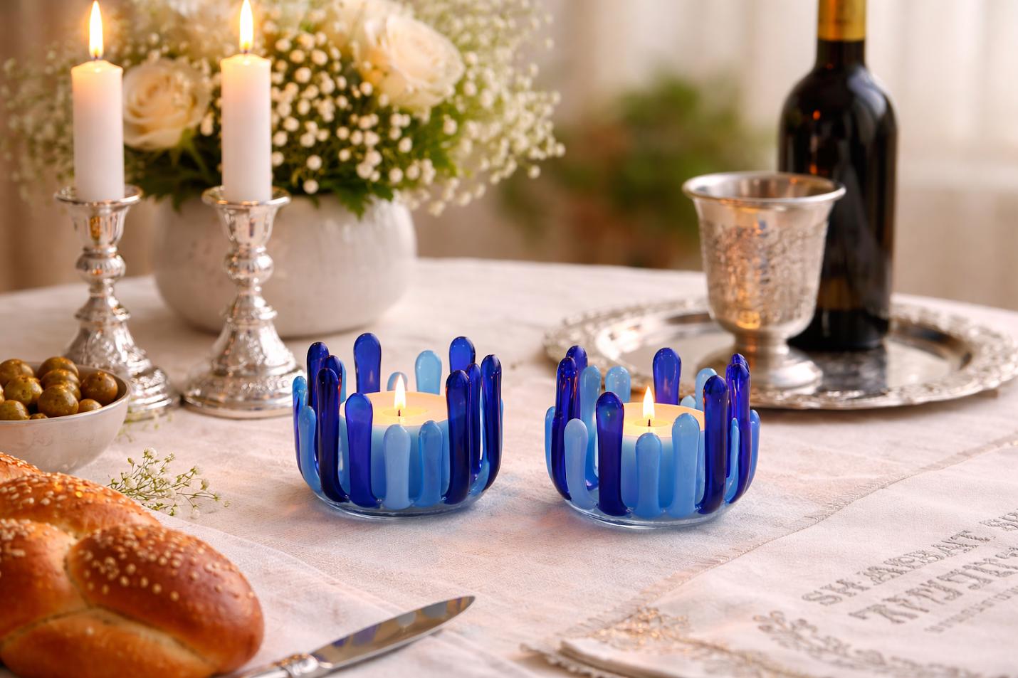 Bring warmth, beauty, and meaning to your Shabbat table with this elegant handmade fused glass candle holder set, crafted in Israel. Modern, vibrant, and meaningful - this piece blends traditional Jewish ritual with contemporary design, making it ideal for both classic and modern homes. Designed with a modern aesthetic and timeless Jewish tradition in mind, this piece makes a stunning addition to any home.