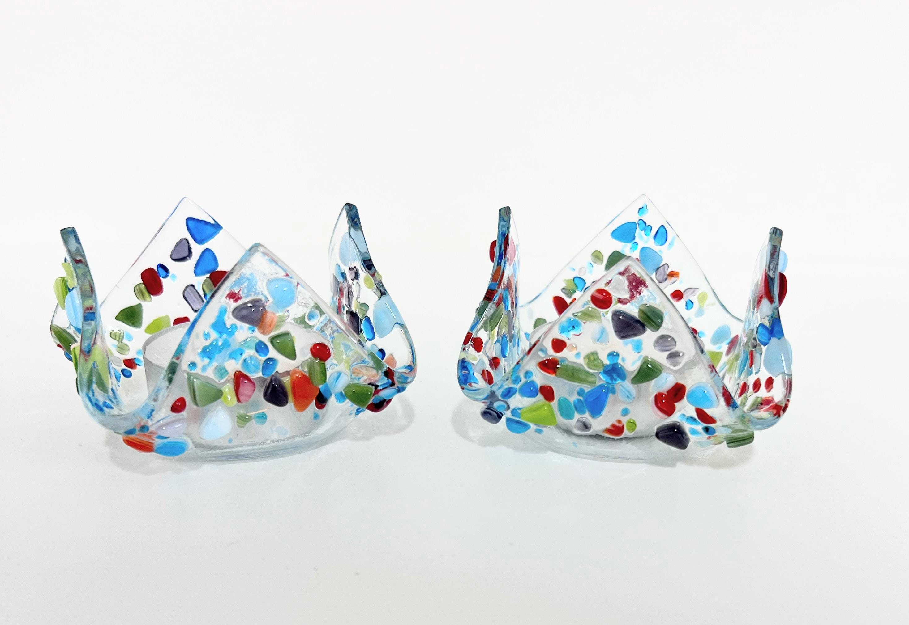 Vibrant Fused Glass Shabbat Tealight Candle Holder Set | Handmade Judaica from Israel